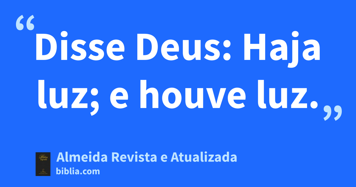 3 Disse Deus: Haja luza; e houve luz. 4 E viu Deus que a luz era boa; e fez separação entre a luz e as trevas. 5 Chamou Deus à luz Dia e às trevas, Noite. Houve tarde e manhã, o primeiro dia.
