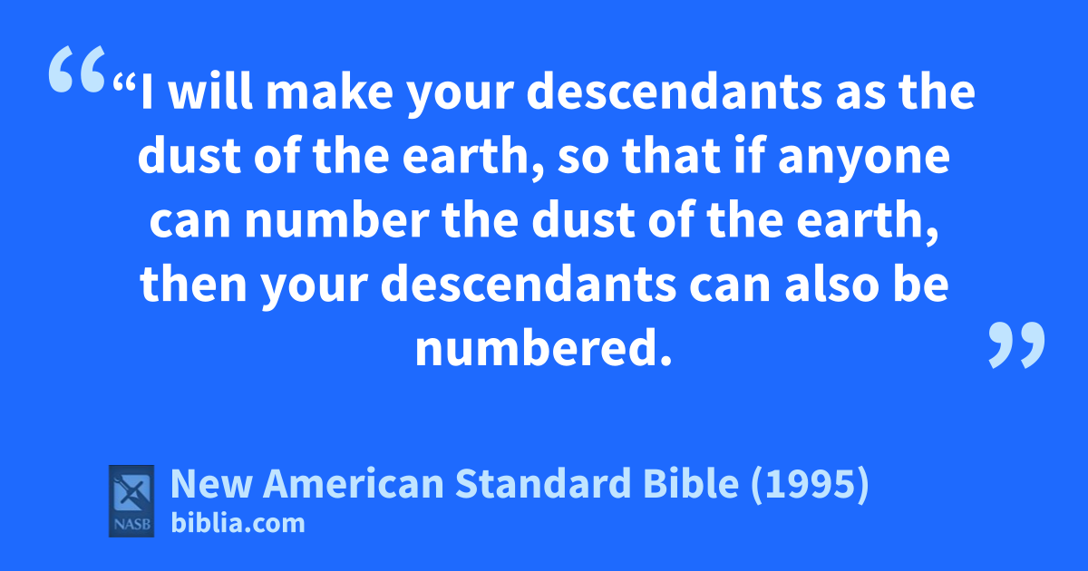 16 “I will make your 1descendants aas the dust of the earth, so that if anyone can number the dust of the earth, then your 1descendants can also be numbered.