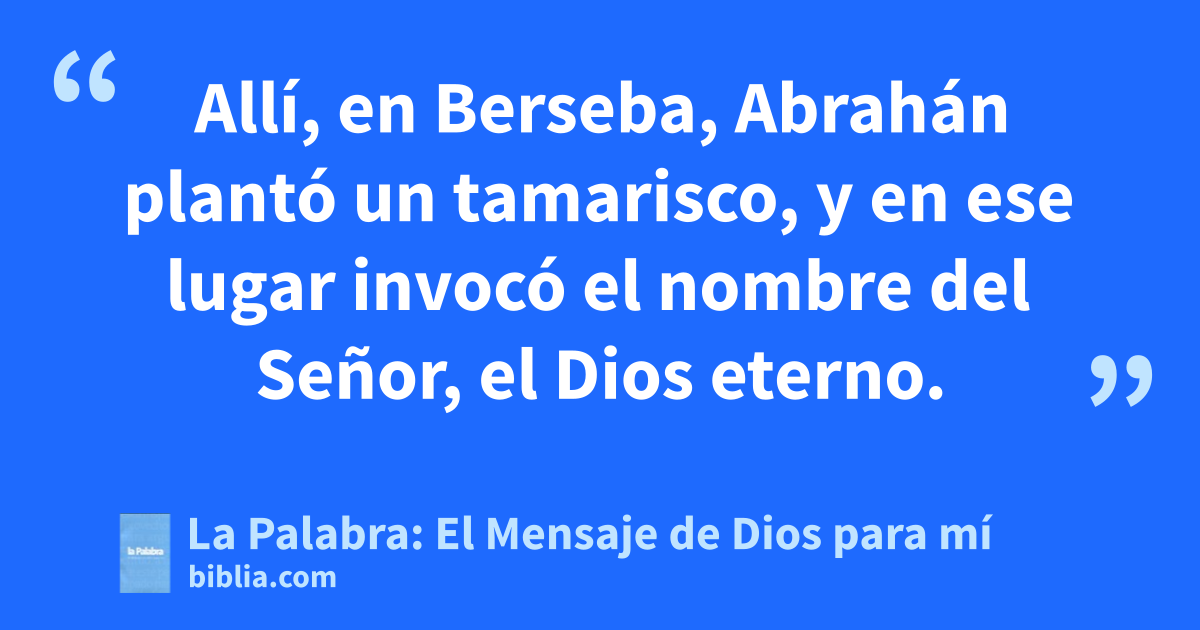 32 Una vez sellada la alianza en Berseba, Abimélec en compañía de Picol, el jefe de su ejército, regresó al país de los filisteos. 33 Allí, en Berseba, Abrahán plantó un tamarisco, y en ese lugar invocó el nombre del Señor, el Dios eterno. 34 Durante mucho tiempo Abrahán habitó en el país de los filisteos.
