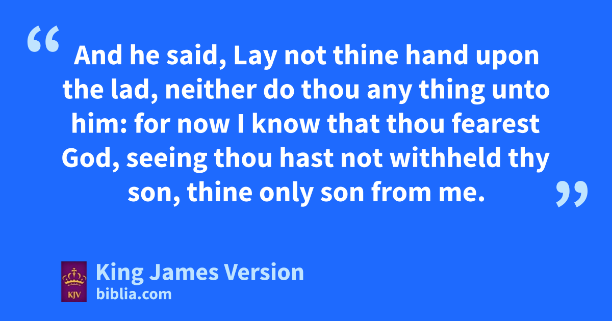 22 *And it came to pass after these things, that aGod did tempt Abraham, and said unto him, Abraham: and he said, †Behold, here I am. 2 And he said, Take now thy son, thine only son Isaac, whom thou lovest, and get thee into the land of bMoriah; and offer him there for a burnt offering upon one of the mountains which I will tell thee of. 3 And Abraham rose up early in the morning, and saddled his ass, and took two of his young men with him, and Isaac his son, and clave the wood for the burnt offering, and rose up, and went unto the place of which God had told him. 4 Then on the third day Abraham lifted up his eyes, and saw the place afar off. 5 And Abraham said unto his young men, Abide ye here with the ass; and I and the lad will go yonder and worship, and come again to you. 6 And Abraham took the wood of the burnt offering, and claid it upon Isaac his son; and he took the fire in his hand, and a knife; and they went both of them together. 7 And Isaac spake unto Abraham his father, and said, My father: and he said, †Here am I, my son. And he said, Behold the fire and the wood: but where is the ||lamb for a burnt offering? 8 And Abraham said, My son, God will provide himself a lamb for a burnt offering: so they went both of them together. 9 And they came to the place which God had told him of; and Abraham built an altar there, and laid the wood in order, and bound Isaac his son, and dlaid him on the altar upon the wood. 10 And Abraham stretched forth his hand, and took the knife to slay his son. 11 And the angel of the Lord called unto him out of heaven, and said, Abraham, Abraham: and he said, Here am I. 12 And he said, eLay not thine hand upon the lad, neither do thou any thing unto him: for fnow I know that thou fearest God, seeing thou hast not withheld thy son, thine only son from me. 13 And Abraham lifted up his eyes, and looked, and behold behind him a ram caught in a thicket by his horns: and Abraham went and took the ram, and offered him up for a burnt offering in the stead of his son. 14 And Abraham called the name of that place ||Jehovah-jireh: as it is said to this day, In the mount of the Lord it shall be seen. 15 And the angel of the Lord called unto Abraham out of heaven the second time, 16 And said, gBy myself have I sworn, saith the Lord, for because thou hast done this thing, and hast not withheld thy son, thine only son: 17 That in blessing I will bless thee, and in multiplying I will multiply thy seed has the stars of the heaven, iand as the sand which is upon the sea †shore; and kthy seed shall possess lthe gate of his enemies; 18 mAnd in thy seed shall all the nations of the earth be blessed; nbecause thou hast obeyed my voice. 19 So Abraham returned unto his young men, and they rose up and went together to oBeer-sheba; and Abraham dwelt at Beer-sheba.
