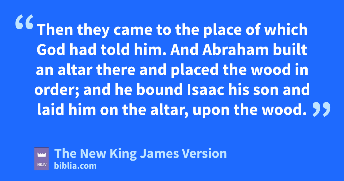 9 Then they came to the place of which God had told him. And Abraham built an altar there and placed the wood in order; and he bound Isaac his son and jlaid him on the altar, upon the wood. 10 And Abraham stretched out his hand and took the knife to slay his son.