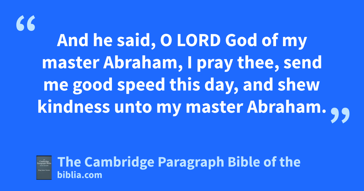 10 And the servant took ten ocamels of the camels of his master, and departed; * for all the goods of his master were in his hand: and he arose, and went to Mesopotamia, unto pthe city of Nahor. 11 And he made his camels to kneel down without the city by a well of water at the time of the evening, even the time * qthat women go out to draw water. 12 And he said, rO Lord God of my master Abraham, I pray thee, ssend me good speed this day, and shew kindness unto my master Abraham. 13 Behold, tI stand here by the well of water; and uthe daughters of the men of the city come out to draw water: 14 and let it come to pass, that the damsel to whom I shall say, Let down thy pitcher, I pray thee, that I may drink; and she shall say, Drink, and I will give thy camels drink also: let the same be she that thou hast appointed for thy servant Isaac; and xthereby shall I know that thou hast shewed kindness unto my master. 15 And it came to pass, before he had done speaking, that behold, Rebekah came out, who was born to Bethuel, son of yMilcah, the wife of Nahor, Abraham’s brother, with her pitcher upon her shoulder. 16 And the damsel was zvery * fair to look upon, a virgin, neither had any man known her: and she went down to the well, and filled her pitcher, and came up. 17 And the servant ran to meet her, and said, Let me, I pray thee, drink a little water of thy pitcher. 18 And she said, Drink, my lord: and she hasted, and let down her pitcher upon her hand, and gave him drink. 19 And when she had done giving him drink, she said, I will draw water for thy camels also, until they have done drinking. 20 And she hasted, and emptied her pitcher into the trough, and ran again unto the well to draw water, and drew for all his camels. 21 And the man wondering at her held his peace, to wit whether athe Lord had made his journey bprosperous or not. 22 And it came to pass, as the camels had done drinking, that the man took a golden * earring of half a shekel weight, and two bracelets for her hands of ten shekels weight of gold; 23 and said, Whose daughter art thou? tell me, I pray thee: is there room in thy father’s house for us to lodge in? 24 And she said unto him, cI am the daughter of Bethuel the son of Milcah, which she bare unto Nahor. 25 She said moreover unto him, We have both straw and provender enough, and room to lodge in. 26 And the man dbowed down his head, and worshipped the Lord. 27 And he said, Blessed be the Lord God of my master Abraham, who hath not left destitute my master of ehis mercy and his truth: I being in the way, the Lord fled me to the house of my master’s brethren. 28 And the damsel ran, and told them of her mother’s house these things. 29 And Rebekah had a brother, and his name was gLaban: and Laban ran out unto the man, unto the well. 30 And it came to pass, when he saw the earring and bracelets upon his sister’s hands, and when he heard the words of Rebekah his sister, saying, Thus spake the man unto me; that he came unto the man; and behold, he stood by the camels at the well. 31 And he said, Come in, hthou blessed of the Lord; wherefore standest thou without? for I have prepared the house, and room for the camels. 32 And the man came into the house: and he ungirded his camels, and igave straw and provender for the camels, and kwater to wash his feet, and the men’s feet that were with him. 33 And there was set meat before him to eat: but he said, I will not eat, until I have told mine errand. And he said, Speak on. 34 And he said, I am Abraham’s servant. 35 And the Lord lhath blessed my master greatly; and he is become great: and he hath given him flocks, and herds, and silver, and gold, and menservants, and maidservants, and camels, and asses. 36 And Sarah my master’s wife mbare a son to my master when she was old: and nunto him hath he given all that he hath. 37 And my master omade me swear, saying, Thou shalt not take a wife to my son of the daughters of the Canaanites, in whose land I dwell: 38 pbut thou shalt go unto my father’s house, and to my kindred, and take a wife unto my son. 39 qAnd I said unto my master, Peradventure the woman will not follow me. 40 rAnd he said unto me, The Lord, sbefore whom I walk, will send his angel with thee, and tprosper thy way; and thou shalt take a wife for my son of my kindred, and of my father’s house: 41 uthen shalt thou be clear from this my oath, when thou comest to my kindred; and if they give not thee one, thou shalt be clear from my oath. 42 And I came this day unto the well, and said, xO Lord God of my master Abraham, if now thou do yprosper my way which I go: 43 zbehold, I stand by the well of water; and it shall come to pass, that when the virgin cometh forth to draw water, and I say to her, Give me, I pray thee, a little water of thy pitcher to drink; 44 aand she say to me, Both drink thou, and I will also draw for thy camels: let the same be the woman whom the Lord bhath appointed out for my master’s son. 45 And before I had done cspeaking in mine heart, behold, Rebekah came forth with her pitcher on her shoulder; and she went down unto the well, and drew water: and I said unto her, Let me drink, I pray thee. 46 And she made haste, and let down her pitcher from her shoulder, and said, Drink, and I will give thy camels drink also: so I drank, and she made the camels drink also. 47 And I asked her, and said, Whose daughter art thou? And she said, The daughter of Bethuel, Nahor’s son, whom Milcah bare unto him: and I put dthe earring upon her face, and the bracelets upon her hands. 48 eAnd I bowed down my head, and worshipped the Lord, and blessed the Lord God of my master Abraham, which had led me in the right way to take fmy master’s brother’s daughter unto his son. 49 And now if ye will gdeal kindly and truly with my master, tell me: and if not, tell me; that I may turn to the right hand, or to the left. 50 Then Laban and Bethuel answered and said, The thing proceedeth from the Lord: we cannot h