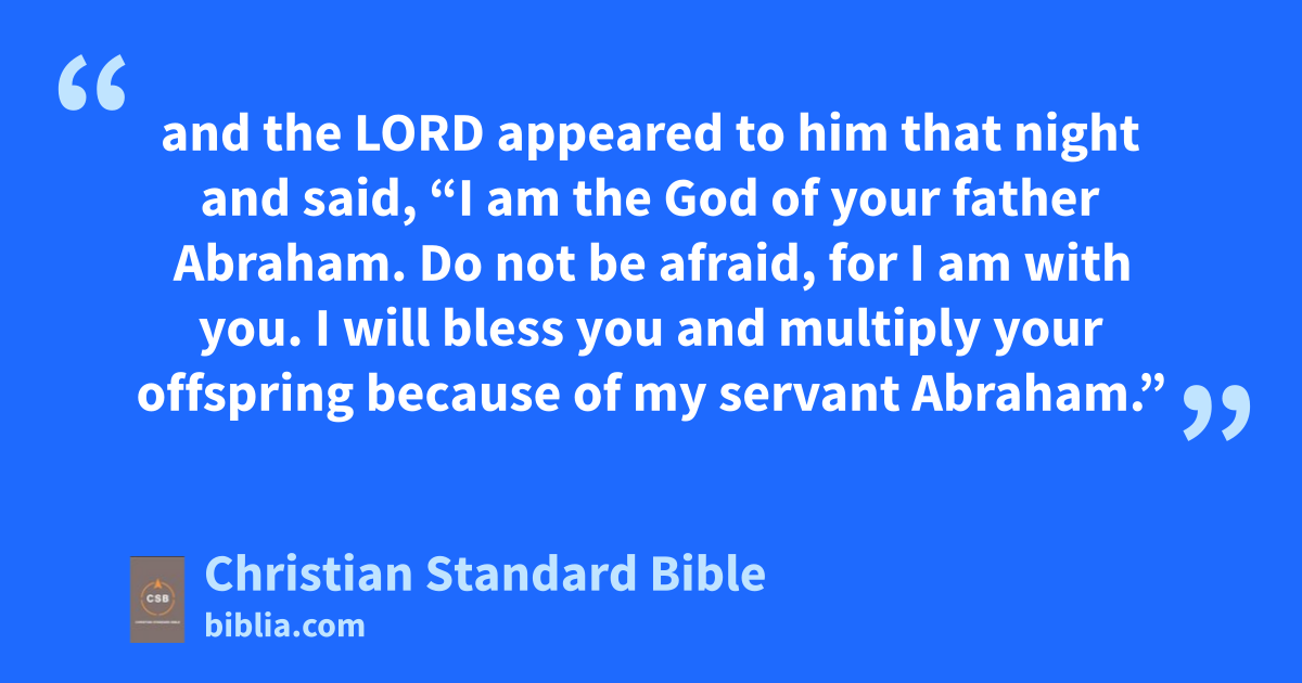 23 From there he went up to Beer-sheba, 24 and the Lord appeared to him that night and said, “I am the God of your father Abraham.m Do not be afraid, for I am with you.n I will bless you and multiply your offspring because of my servant Abraham.”