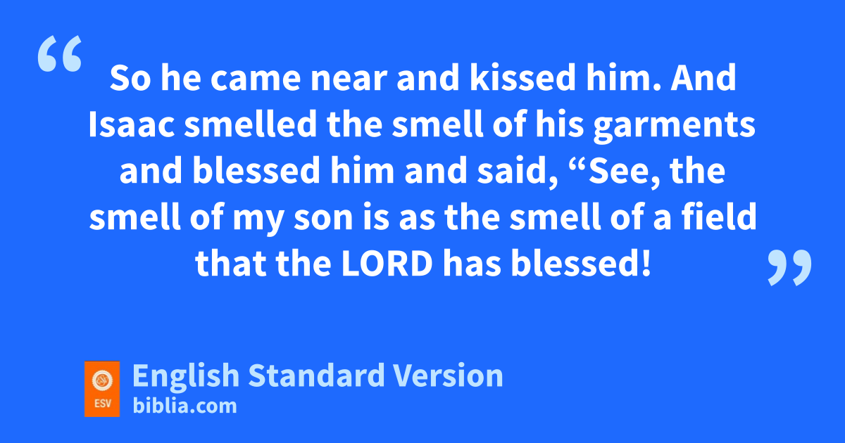 26 Then his father Isaac said to him, “Come near and kiss me, my son.” 27 So he came near and kissed him. And Isaac smelled the smell of his garments land blessed him and said,