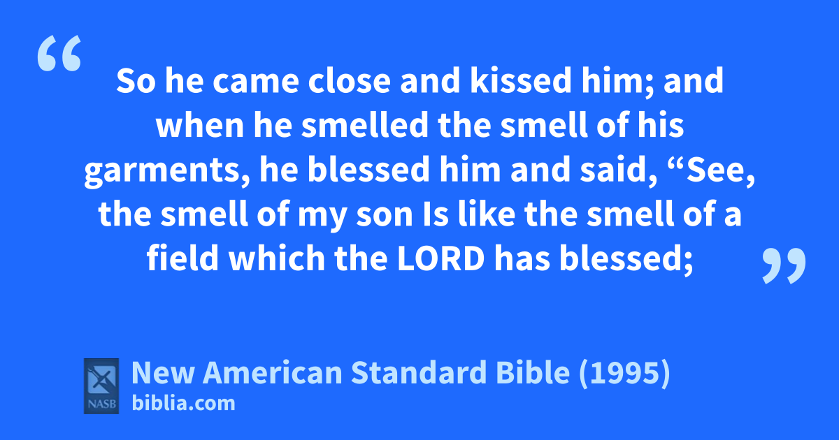 27 So he came close and kissed him; and when he smelled the smell of his garments, he ablessed him and said,