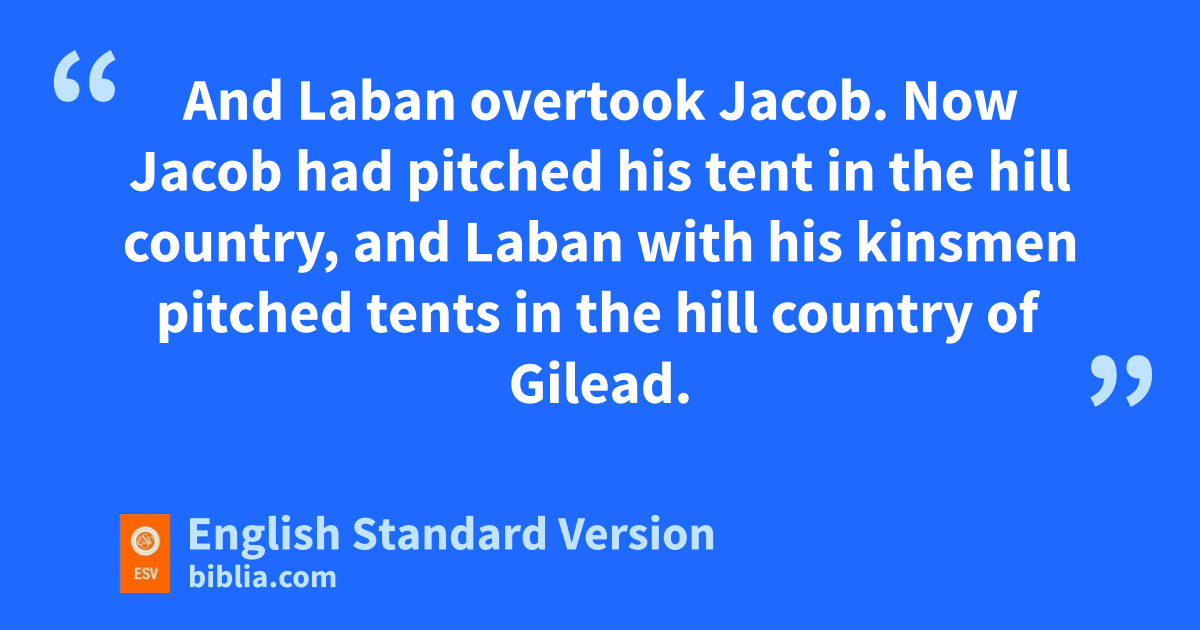22 When it was told Laban on the third day that Jacob had fled, 23 he took his kinsmen with him and pursued him for seven days and followed close after him into the hill country of Gilead. 24 But God came to Laban the Aramean rin a dream by night and said to him, “Be careful not to say anything to Jacob, seither good or bad.”
