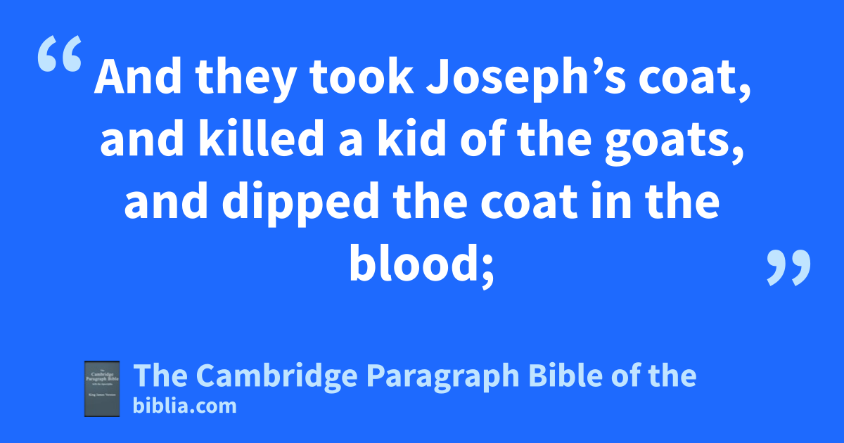 12 And his brethren went to feed their father’s flock in kShechem. 13 And Israel said unto Joseph, Do not thy brethren feed the flock in Shechem? come, and I will send thee unto them. And he said to him, Here am I. 14 And he said to him, Go, I pray thee, * see whether it be well with thy brethren, and well with the flocks; and bring me word again. So he sent him out of the vale of lHebron, and he came to Shechem. 15 And a certain man found him, and behold, he was wandering in the field: and the man asked him, saying, What seekest thou? 16 And he said, I seek my brethren: tell me, I pray thee, where they feed their flocks. 17 And the man said, They are departed hence; for I heard them say, Let us go to Dothan. And Joseph went after his brethren, and found them in mDothan. 18 And when they saw him afar off, even before he came near unto them, they conspired against him to slay him. 19 And they said one to another. Behold, this * dreamer cometh. 20 Come now therefore, and let us slay him, and cast him into some pit, and we will say, Some evil beast hath devoured him: and we shall see what will become of his dreams. 21 And nReuben heard it, and he delivered him out of their hands; and said, Let us not kill him. 22 And Reuben said unto them, Shed no blood, but cast him into this pit that is in the wilderness, and lay no hand upon him, othat he might rid him out of their hands, to deliver him to his father again. 23 And it came to pass, when Joseph was come unto his brethren, that they stript Joseph out of his coat, his coat of many * colours that was on him; 24 and they took him, and cast him into a pit: and the pit was empty, there was no water in it. 25 And they sat down to eat bread: and they lift up their eyes and looked, and behold, a company of pIshmeelites came from Gilead with their camels bearing qspicery and rbalm and myrrh, going to carry it down to Egypt. 26 And Judah said unto his brethren, What profit is it if we slay our brother, and sconceal his blood? 27 Come, and let us sell him to the Ishmeelites, and tlet not our hand be upon him; for he is our brother and uour flesh. And his brethren * were content. 28 Then there passed by wMidianites merchantmen; and they drew and lift up Joseph out of the pit, xand sold Joseph to the Ishmeelites for twenty ypieces of silver: and they brought Joseph into Egypt. 29 And Reuben returned unto the pit; and behold, Joseph was not in the pit; and he zrent his clothes. 30 And he returned unto his brethren, and said, The child ais not; and I, whither shall I go? 31 And they took bJoseph’s coat, and killed a kid of the goats, and dipped the coat in the blood; 32 and they sent the coat of many colours, and they brought it to their father; and said, This have we found: cknow now whether it be thy son’s coat or no. 33 And he knew it, and said, It is my son’s coat; an devil beast hath devoured him; Joseph is without doubt rent in pieces. 34 And Jacob erent his clothes, and put sackcloth upon his loins, and mourned for his son many days. 35 And all his sons and all his daughters frose up to comfort him; but he refused to be comforted; and he said, For gI will go down into the grave unto my son mourning. Thus his father wept for him. 36 And hthe Medanites sold him into Egypt unto Potiphar, an * officer of Pharaoh’s, and * * captain of the guard.