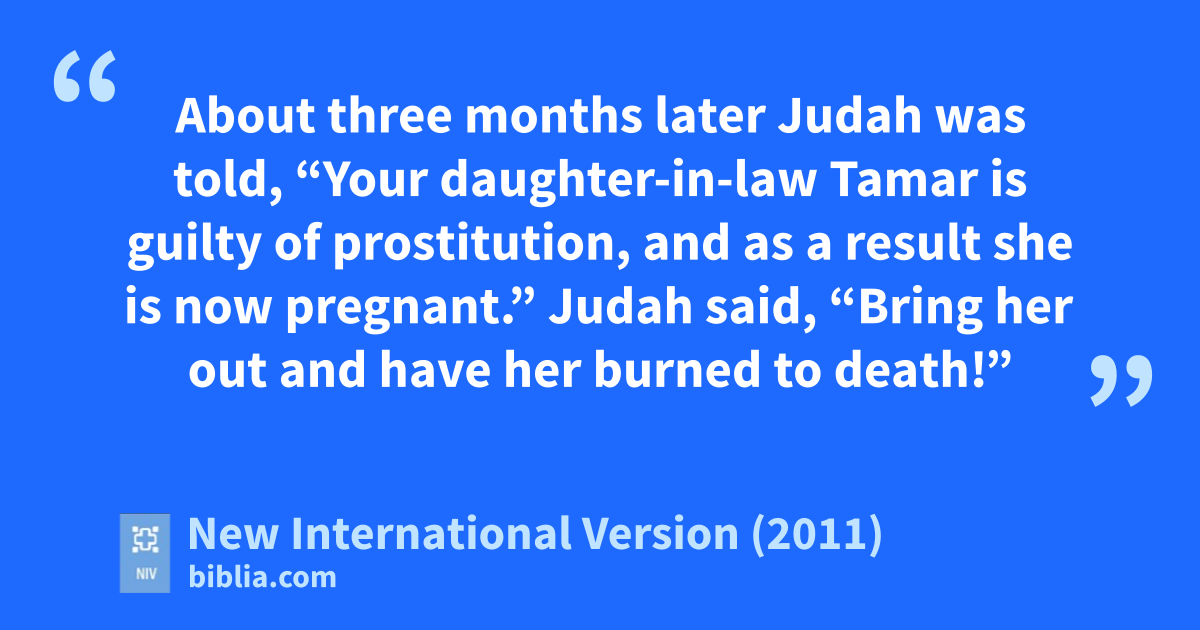 24 About three months later Judah was told, “Your daughter-in-law Tamar is guilty of prostitution, and as a result she is now pregnant.”