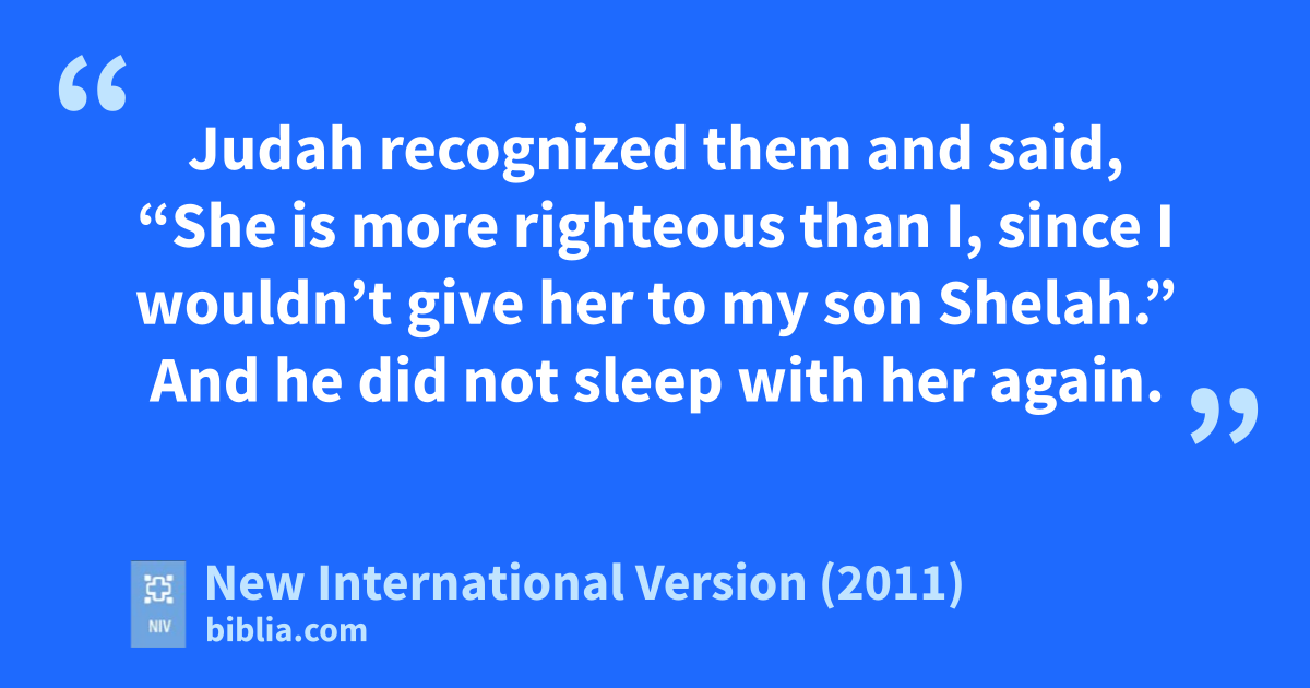 26 Judah recognized them and said, “She is more righteous than I,o since I wouldn’t give her to my son Shelah.p” And he did not sleep with her again.