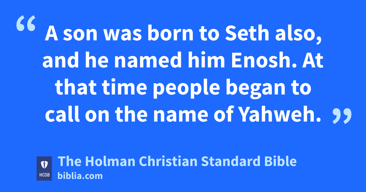 25 Adam was intimate with his wife again, and she gave birth to a son and named him Seth, for she said, “God has given i me another child in place of Abel, since Cain killed him.” 26 A son was born to Seth j also, and he named him Enosh. At that time people began to call on the name of * Yahweh. k
