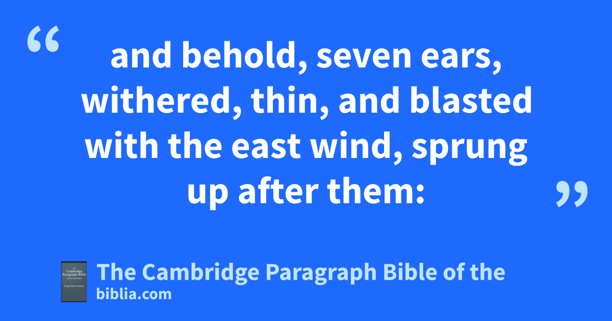 XLI. And it came to pass at the end of atwo full years, that Pharaoh dreamed: and behold, he stood by the river. 2 And behold, there came up out of the river seven well favoured kine and fatfleshed; and they fed in a bmeadow. 3 And behold, seven other kine came up after them out of the river, ill favoured and leanfleshed; and stood by the other kine upon the brink of the river. 4 And the ill favoured and leanfleshed kine did eat up the seven well favoured and fat kine. So Pharaoh awoke. 5 And he slept and dreamed the second time: and behold, seven ears of corn came up upon one stalk, * rank and good. 6 And behold, seven thin ears and blasted with the east wind sprang up after them. 7 And the seven thin ears devoured the seven rank and full ears. And Pharaoh awoke, and behold, it was a dream. 8 And it came to pass in the morning cthat his spirit was troubled; and he sent and called for all dthe magicians of Egypt, and all the wise men thereof: and Pharaoh told them his dream; but there was none that could interpret them unto Pharaoh. 9 Then spake the chief butler unto Pharaoh, saying, I do remember my faults this day: 10 Pharaoh was ewroth with his servants, and put me in ward in the fcaptain of the guard’s house, both me and the chief baker: 11 and gwe dreamed a dream in one night, I and he; we dreamed each man according to the interpretation of his dream. 12 And there was there with us a young man, a Hebrew, servant to the captain of the guard; and we told him, and he hinterpreted to us our dreams; to each man according to his dream he did interpret. 13 And it came to pass, ias he interpreted to us, so it was; me he restored unto mine office, and him he hanged.