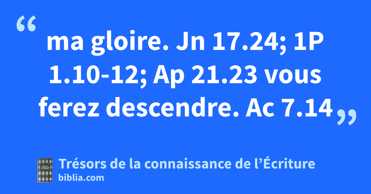 ma gloire. Jn 17.24; 1P 1.10-12; Ap 21.23 vous ferez descendre. Ac 7.14