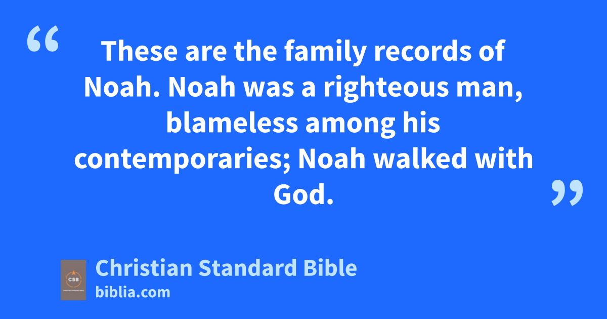 9 These are the family recordsh of Noah. Noah was a righteous man,i blameless among his contemporaries;j Noah walked with God.k 10 And Noah fathered three sons: Shem, Ham, and Japheth.