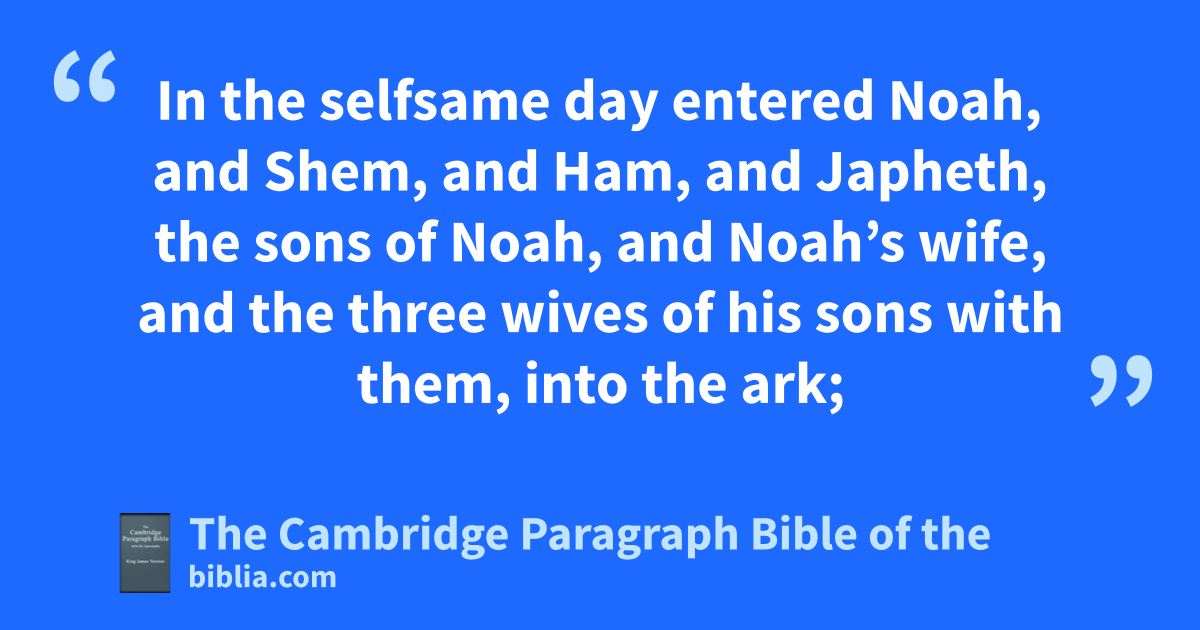 10 * And it came to pass * after seven days, that the waters of the flood were upon the earth. 11 In the six hundredth year of Noah’s life, in the second month, the seventeenth day of the month, the same day were all the efountains of the great deep broken up, and the * fwindows of heaven were opened. 12 And the rain was upon the earth forty days and forty nights. 13 In the selfsame day entered Noah, and Shem, and Ham, and Japheth, the sons of Noah, and Noah’s wife, and the three wives of his sons with them, into the ark; 14 they, and every beast after his kind, and all the cattle after their kind, and every creeping thing that creepeth upon the earth after his kind, and every fowl after his kind, every bird of every * sort. 15 And they gwent in unto Noah into the ark, two and two of all flesh, wherein is the breath of life. 16 And they that went in, went in male and female of all flesh, as God had commanded him: and the Lord hshut him in. 17 And the flood was forty days upon the earth; and the waters increased, and bare up the ark, and it was lift up above the earth. 18 And the waters prevailed, and were increased greatly upon the earth; and the ark went upon the face of the waters. 19 And the waters prevailed exceedingly upon the earth; and all the high hills, that were under the whole heaven, were covered. 20 Fifteen cubits upward did the waters prevail; and the mountains were covered. 21 And all flesh died that moved upon the earth, both of fowl, and of cattle, and of beast, and of every creeping thing that creepeth upon the earth, and every man: 22 all in iwhose nostrils was * the breath of life, of all that was in the dry land, died. 23 And every living substance was destroyed which was upon the face of the ground, both man, and cattle, and the creeping things, and the fowl of the heaven; and they were destroyed from the earth: and kNoah only remained alive, and they that were with him in the ark. 24 And the waters prevailed upon the earth an hundred and fifty days.