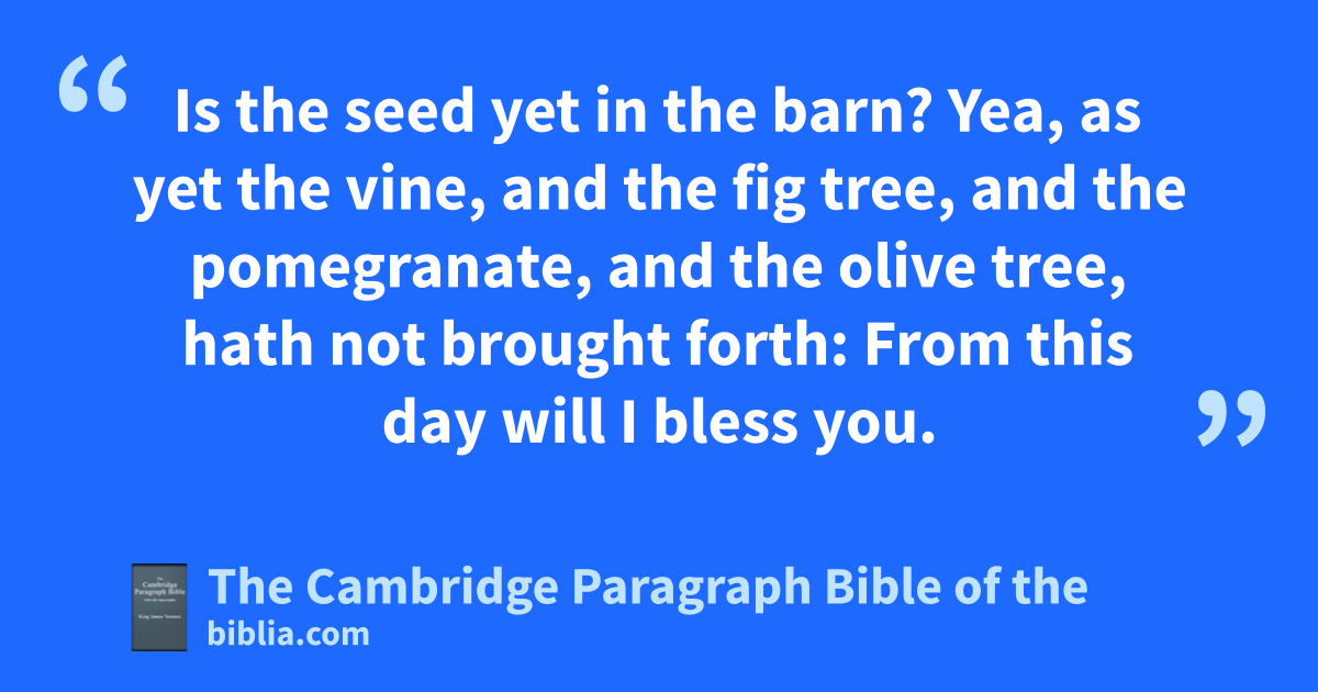 Yea, as yet the vine, and the fig tree, and the pomegranate, and the olive tree, hath not brought forth: