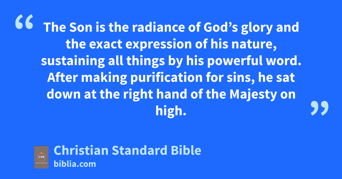 1 Long ago God spokea to our ancestors by the prophetsb at different times and in different ways.c 2 In these last days,d he has spoken to us by his Son. God has appointed him heir of all thingse and made the universeA,f through him. 3 The Son is the radianceB of God’s glory and the exact expressionC of his nature,g sustaining all things by his powerful word.h After making purification for sins,D he sat down at the right hand of the Majesty on high.E,i 4 So he became superior to the angels, just as the name he inherited is more excellent than theirs.j