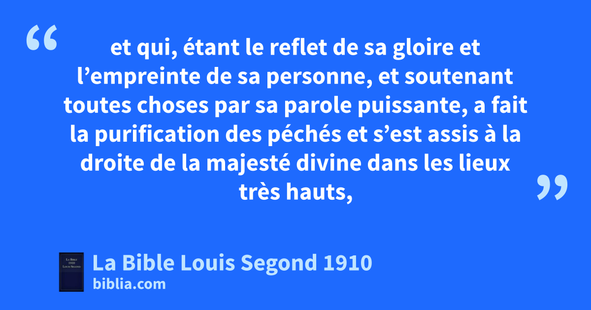 1Après avoir autrefois, à plusieurs reprises et de plusieurs manières, parlé à nos pères par les prophètes, 2Dieu, dans ces derniers temps, nous a parlé par le Fils, aqu’il a établi héritier de toutes choses, bpar lequel il a aussi créé le monde, 3et cqui, étant le reflet de sa gloire et l’empreinte de sa personne, et soutenant toutes choses par sa parole puissante, a fait la purification des péchés et s’est assis à la droite de la majesté divine dans les lieux très hauts, 4devenu d’autant supérieur aux anges qu’il a hérité d’un nom dplus excellent que le leur.