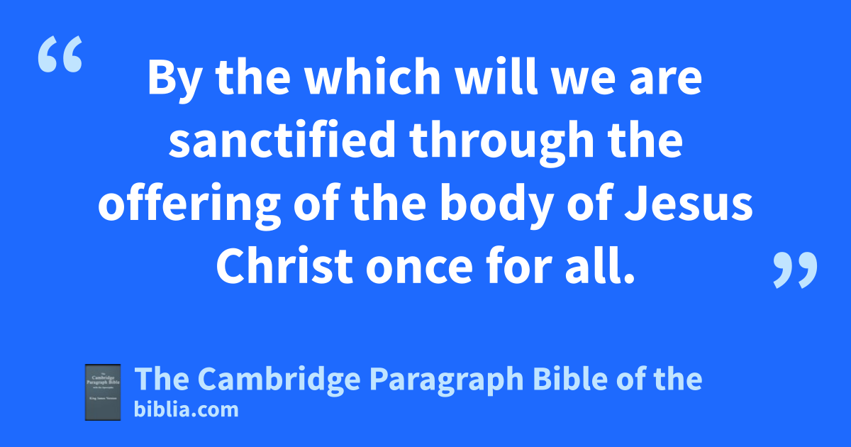 X. For the law having aa shadow bof good things to come, and not the very image of the things, can never cwith those sacrifices which they offered year by year dcontinually cmake the comers thereunto eperfect. 2 For then * would they not have ceased to be offered? because that the worshippers once purged should have had no more conscience of sins. 3 But fin those sacrifices there is ga remembrance again made of sins hevery year. 4 For iit is not possible that kthe blood of bulls and of goats should take away sins. 5 Wherefore lwhen he cometh into the world, he saith, mSacrifice and offering thou wouldest not, but na body * hast thou prepared me: 6 in oburnt offerings and psacrifices for sin thou hast had no pleasure. 7 Then said I, Lo, I come (in the volume of the book it is written of me,) to do thy will, O God. 8 Above when he said, qSacrifice and offering and oburnt offerings and poffering for sin thou wouldest not, neither hadst pleasure therein: which are offered by the law; 9 then said he, rLo, I come to do thy will, O God. He taketh away the first, that he may establish the second. 10 By the which will swe are sanctified through the offering of nthe body of Jesus Christ tonce for all. 11 And every priest standeth udaily wministering and offering oftentimes xthe same sacrifices, iwhich can never take away sins: 12 but this man, yafter he had offered one sacrifice for sins dfor ever, zsat down on the right hand of God; 13 afrom henceforth expecting btill his enemies be made his footstool. 14 For by one offering che hath perfected cfor ever dthem that are sanctified. 15 Whereof ethe Holy Ghost also is a witness to us: for after that he had said before, 16 fThis is the covenant that I will gmake with them after those days, saith the Lord, I will put my laws into their hearts, and in their minds will I write them; 17 g* and their sins and iniquities will I remember no more. 18 Now where remission of these is, there is no more offering for sin.
