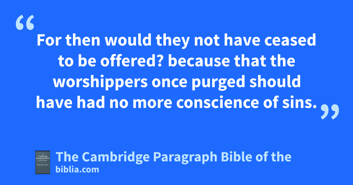 X. For the law having aa shadow bof good things to come, and not the very image of the things, can never cwith those sacrifices which they offered year by year dcontinually cmake the comers thereunto eperfect. 2 For then * would they not have ceased to be offered? because that the worshippers once purged should have had no more conscience of sins. 3 But fin those sacrifices there is ga remembrance again made of sins hevery year. 4 For iit is not possible that kthe blood of bulls and of goats should take away sins. 5 Wherefore lwhen he cometh into the world, he saith, mSacrifice and offering thou wouldest not, but na body * hast thou prepared me: 6 in oburnt offerings and psacrifices for sin thou hast had no pleasure. 7 Then said I, Lo, I come (in the volume of the book it is written of me,) to do thy will, O God. 8 Above when he said, qSacrifice and offering and oburnt offerings and poffering for sin thou wouldest not, neither hadst pleasure therein: which are offered by the law; 9 then said he, rLo, I come to do thy will, O God. He taketh away the first, that he may establish the second. 10 By the which will swe are sanctified through the offering of nthe body of Jesus Christ tonce for all. 11 And every priest standeth udaily wministering and offering oftentimes xthe same sacrifices, iwhich can never take away sins: 12 but this man, yafter he had offered one sacrifice for sins dfor ever, zsat down on the right hand of God; 13 afrom henceforth expecting btill his enemies be made his footstool. 14 For by one offering che hath perfected cfor ever dthem that are sanctified. 15 Whereof ethe Holy Ghost also is a witness to us: for after that he had said before, 16 fThis is the covenant that I will gmake with them after those days, saith the Lord, I will put my laws into their hearts, and in their minds will I write them; 17 g* and their sins and iniquities will I remember no more. 18 Now where remission of these is, there is no more offering for sin.