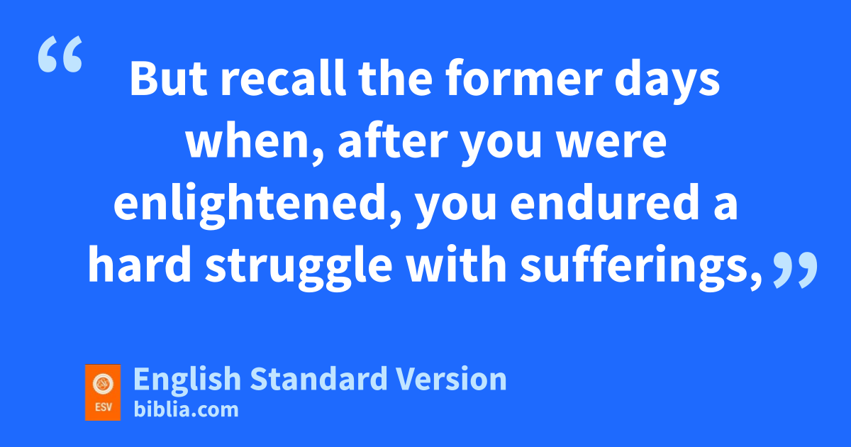 32 But recall the former days when, after ryou were enlightened, you endured sa hard struggle with sufferings, 33 sometimes being tpublicly exposed to reproach and affliction, and sometimes being partners with those so treated. 34 For uyou had compassion on those in prison, and vyou joyfully accepted the plundering of your property, since you knew that you yourselves had wa better possession and an abiding one. 35 Therefore do not throw away your confidence, which has xa great reward. 36 For yyou have need of endurance, so that zwhen you have done the will of God you may areceive what is promised. 37 For,