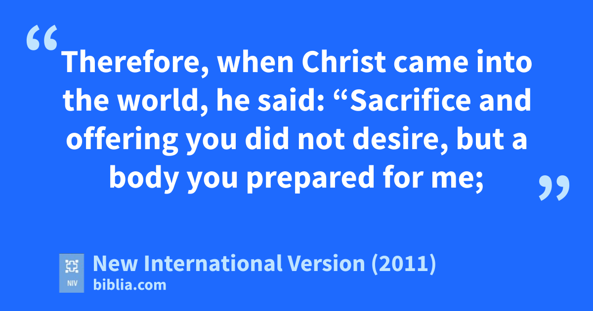 8 First he said, “Sacrifices and offerings, burnt offerings and sin offerings you did not desire, nor were you pleased with them”a—though they were offered in accordance with the law. 9 Then he said, “Here I am, I have come to do your will.”b He sets aside the first to establish the second. 10 And by that will, we have been made holyc through the sacrifice of the bodyd of Jesus Christ once for all.e