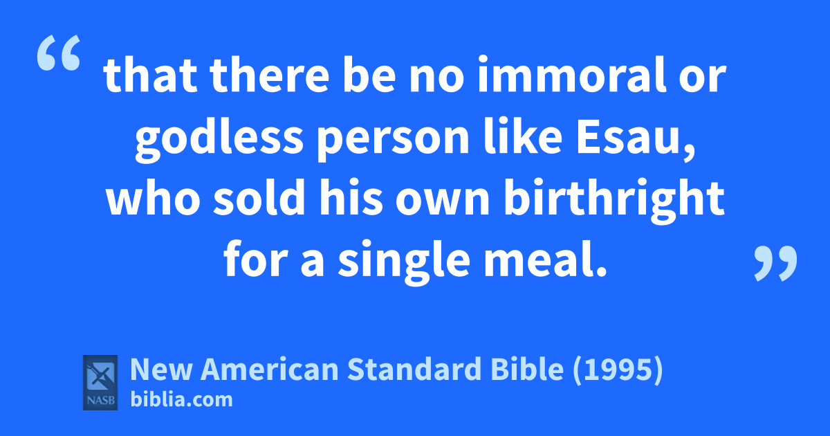 16 that there be no aimmoral or bgodless person like Esau, cwho sold his own birthright for a single meal.