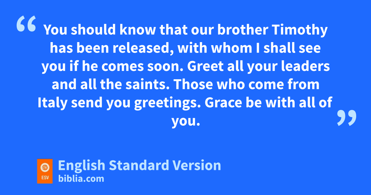 22 I appeal to you, brothers,3 bear with my word of exhortation, for kI have written to you briefly. 23 You should know that lour brother Timothy has been released, with whom I shall see you if he comes soon. 24 Greet all myour leaders and all the saints. Those who come from Italy send you greetings. 25 nGrace be with all of you.
