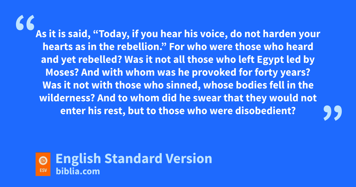 16 For iwho were those who heard and yet rebelled? Was it not jall those who left Egypt led by Moses? 17 And with whom was he provoked for forty years? Was it not with those who sinned, kwhose bodies fell in the wilderness? 18 And to whom did he swear that lthey would not enter his rest, but to those who were disobedient? 19 So we see that mthey were unable to enter because of unbelief.