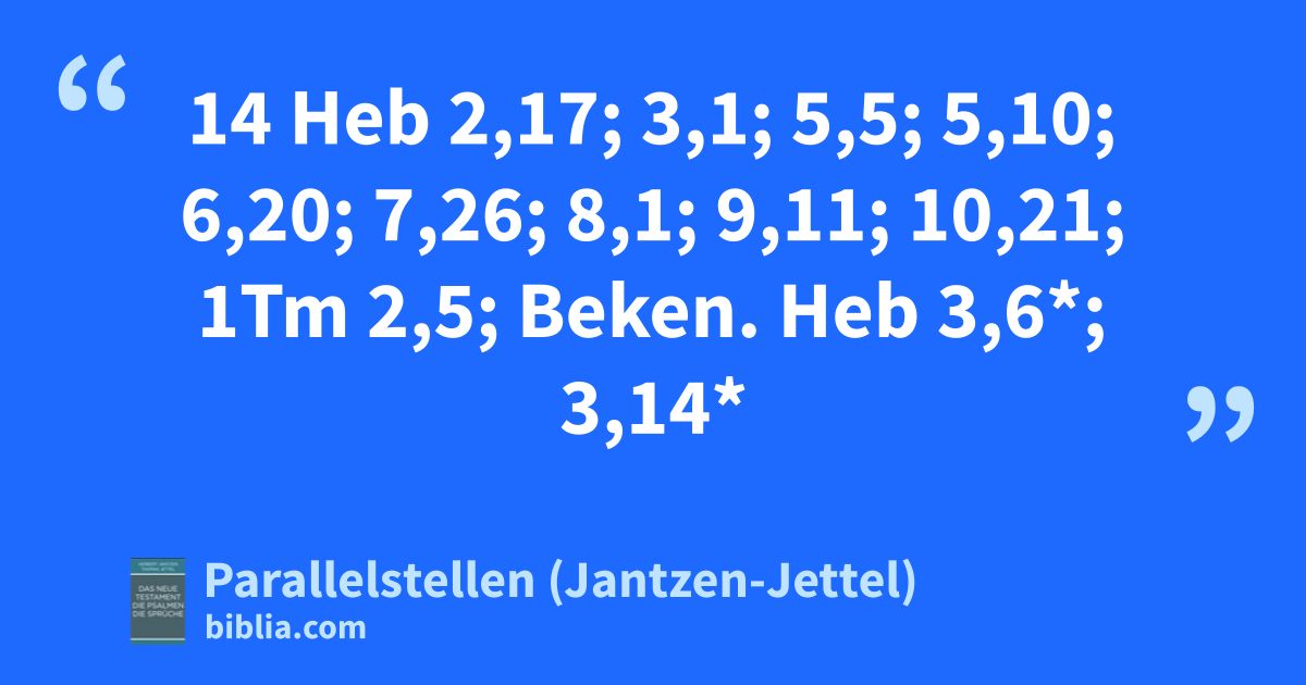 14 Heb 2,17; 3,1; 5,5; 5,10; 6,20; 7,26; 8,1; 9,11; 10,21; 1Tm 2,5; Beken. Heb 3,6*; 3,14*