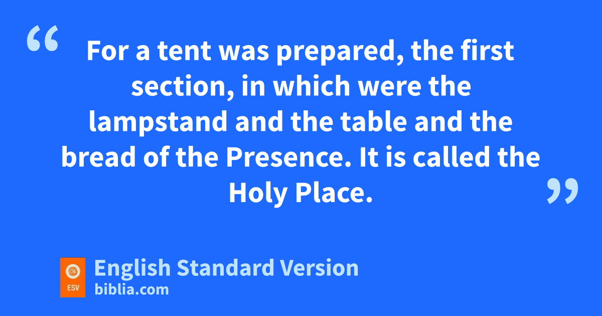 9 Now even the first covenant had regulations for worship and man earthly place of holiness. 2 For na tent1 was prepared, the first section, in which were othe lampstand and pthe table and qthe bread of the Presence.2 It is called the Holy Place. 3 Behind rthe second curtain was a second section3 called the Most Holy Place, 4 having the golden saltar of incense and tthe ark of the covenant covered on all sides with gold, in which was ua golden urn holding the manna, and vAaron’s staff that budded, and wthe tablets of the covenant. 5 Above it were xthe cherubim of glory overshadowing ythe mercy seat. Of these things we cannot now speak in detail.