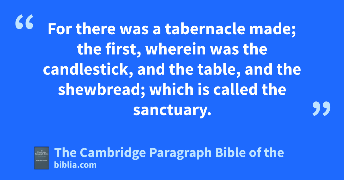 IX. Then verily the first covenant had also * aordinances of bdivine service, and a cworldly dsanctuary. 2 For there was ea tabernacle fmade; gthe first, hwherein was ithe candlestick, and kthe table, and lthe shewbread; ewhich is called * mthe sanctuary. 3 And nafter the second vail, the tabernacle which is called cthe holiest of all; 4 which had the golden ocenser, and pthe ark of qthe covenant overlaid round about with gold, wherein was rthe golden pot that had manna, and sAaron’s rod that budded, and tthe tables of qthe covenant; 5 and uover it the cherubims of glory shadowing vthe mercy seat; of which we cannot now speak particularly. 6 Now when these things were thus fordained, the priests went walways into gthe first tabernacle, accomplishing bthe service of God. 7 But into xthe second went the high priest alone yonce every year, not without blood, zwhich he offered for himself, and for the aerrors of the people: 8 bthe Holy Ghost this signifying, that cthe way into dthe holiest of all was not yet made manifest, while as the first tabernacle was yet standing: 9 which was ea figure for the time then fpresent, in which gwere offered both gifts and sacrifices, hthat could not make him that did the service perfect, as pertaining to the conscience; 10 which stood only in ijmeats and jdrinks, and kdivers lwashings, and mcarnal * ordinances, nimposed on them until the time of reformation. 11 But Christ being come oa high priest pof good things to come, by qa greater and more perfect tabernacle, not rmade with hands, that is to say, not of this building, 12 neither by sthe blood of goats and calves, but by this own blood uhe entered in vonce into wthe holy place, xhaving yobtained eternal zredemption for us. 13 For if athe blood of bulls and of goats, and bthe ashes of a heifer sprinkling cthe unclean, sanctifieth to the purifying of the flesh: 14 how much more dshall the blood of Christ, who ethrough the eternal Spirit foffered himself without * gspot to God, hpurge your conscience ifrom dead works kto serve lthe living God?