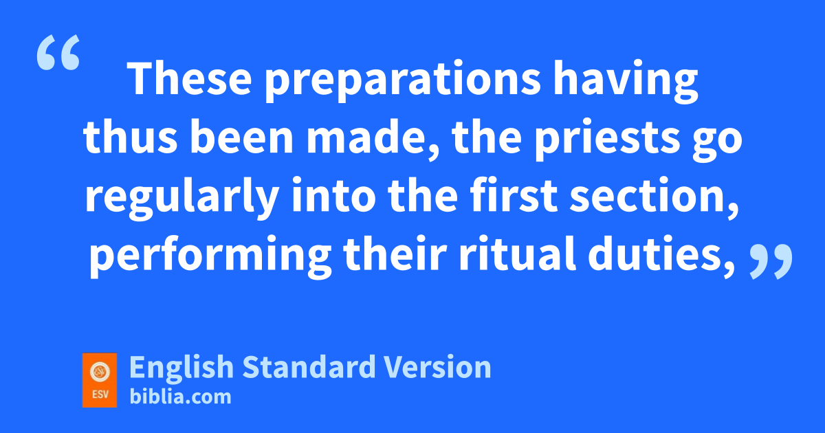 6 These preparations having thus been made, zthe priests go regularly into the first section, performing their ritual duties, 7 but into the second only athe high priest goes, and he but aonce a year, and not without taking blood, bwhich he offers for himself and for the unintentional sins of the people. 8 By this the Holy Spirit indicates that cthe way into the holy places is not yet opened as long as the first section is still standing 9 (which is symbolic for the present age).4 According to this arrangement, gifts and sacrifices are offered dthat cannot perfect the conscience of the worshiper, 10 but deal only with efood and drink and fvarious washings, regulations for the body imposed until the time of reformation.