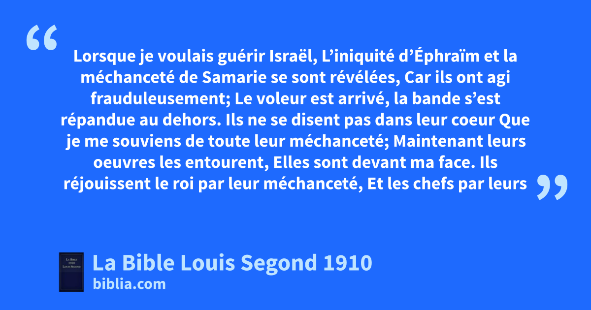 L’iniquité d’Éphraïm et la méchanceté de Samarie se sont révélées,