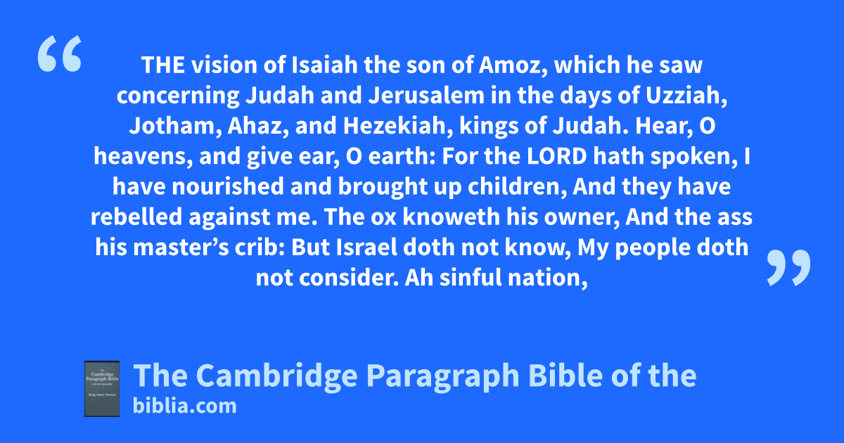 I. * The avision of Isaiah the son of Amoz, which he saw concerning Judah and Jerusalem aain the days of bUzziah, cJotham, dAhaz, and eHezekiah, kings of Judah.