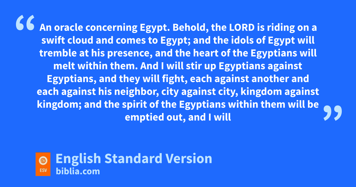19 In that day there will be an zaltar to the Lord in the midst of the land of Egypt, and a apillar to the Lord at its border. 20 aIt will be a sign and a witness to the Lord of hosts in the land of Egypt. When they cry to the Lord because of oppressors, bhe will send them a savior and defender, and deliver them. 21 cAnd the Lord will make himself known to the Egyptians, and the Egyptians will know the Lord in that day dand worship with sacrifice and offering, and they will make vows to the Lord and perform them. 22 eAnd the Lord will strike Egypt, striking and healing, and they will return to the Lord, and he will listen to their pleas for mercy and heal them.