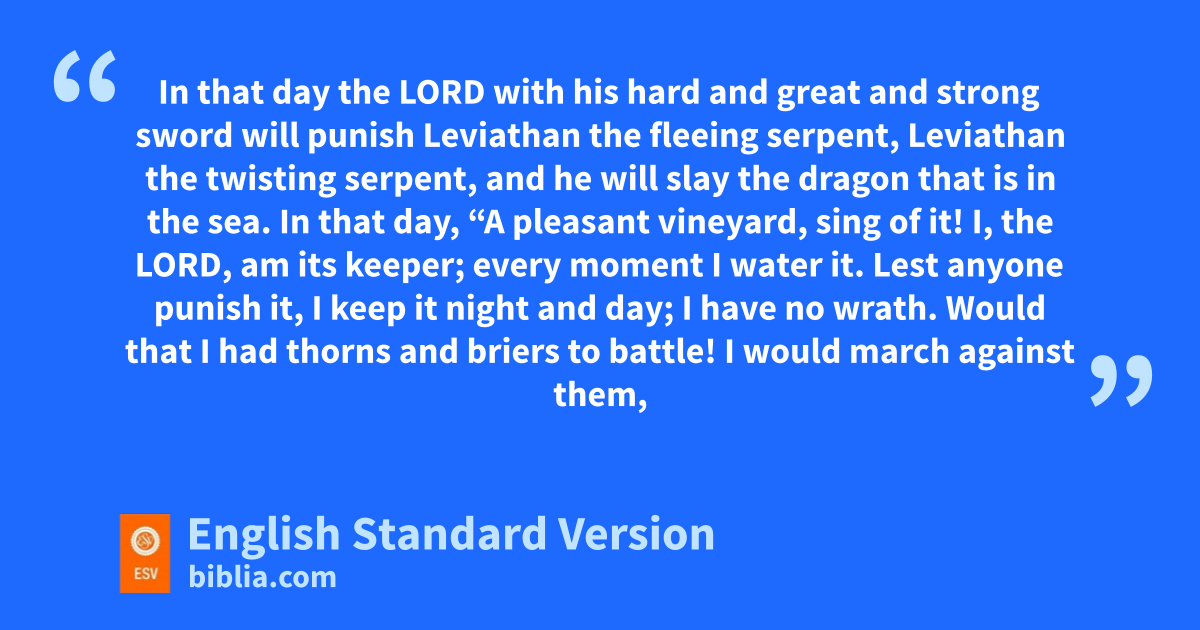 27 In that day the Lord with his hard and great and strong dsword will punish eLeviathan the fleeing serpent, eLeviathan the twisting serpent, and he will slay fthe dragon that is in the sea.