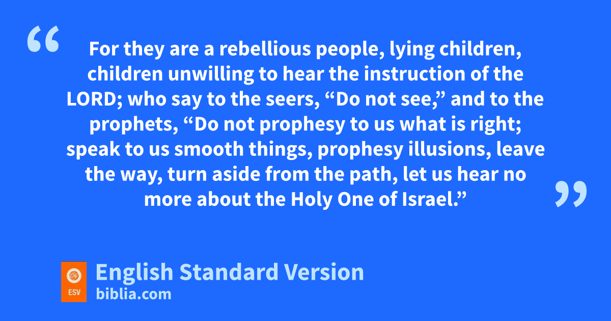 19 For a people shall dwell rin Zion, in Jerusalem; you shall weep no more. He will surely be gracious to you at the sound of your cry. As soon as he hears it, he answers you. 20 And though the Lord give you the sbread of adversity and the swater of affliction, tyet your Teacher will not hide himself anymore, but your eyes shall see your Teacher. 21 uAnd your ears shall hear a word behind you, saying, “This is vthe way, walk in it,” when you turn to the right or when you turn to the left. 22 Then you will defile your carved idols overlaid with silver and your gold-plated metal images. wYou will scatter them as unclean things. You will say to them, “Be gone!”