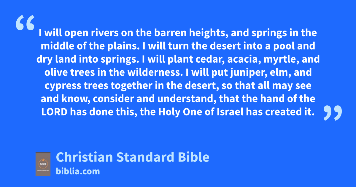 19 I will plant cedar, acacia, myrtle, and olive trees