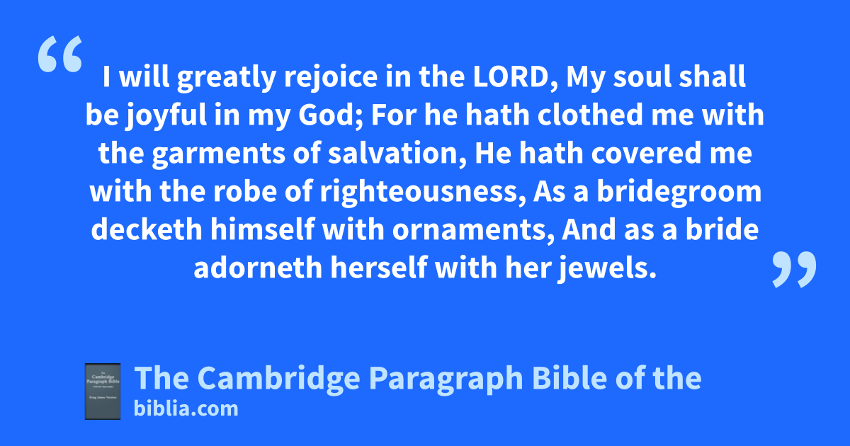 10 jI will greatly rejoice in the Lord,
