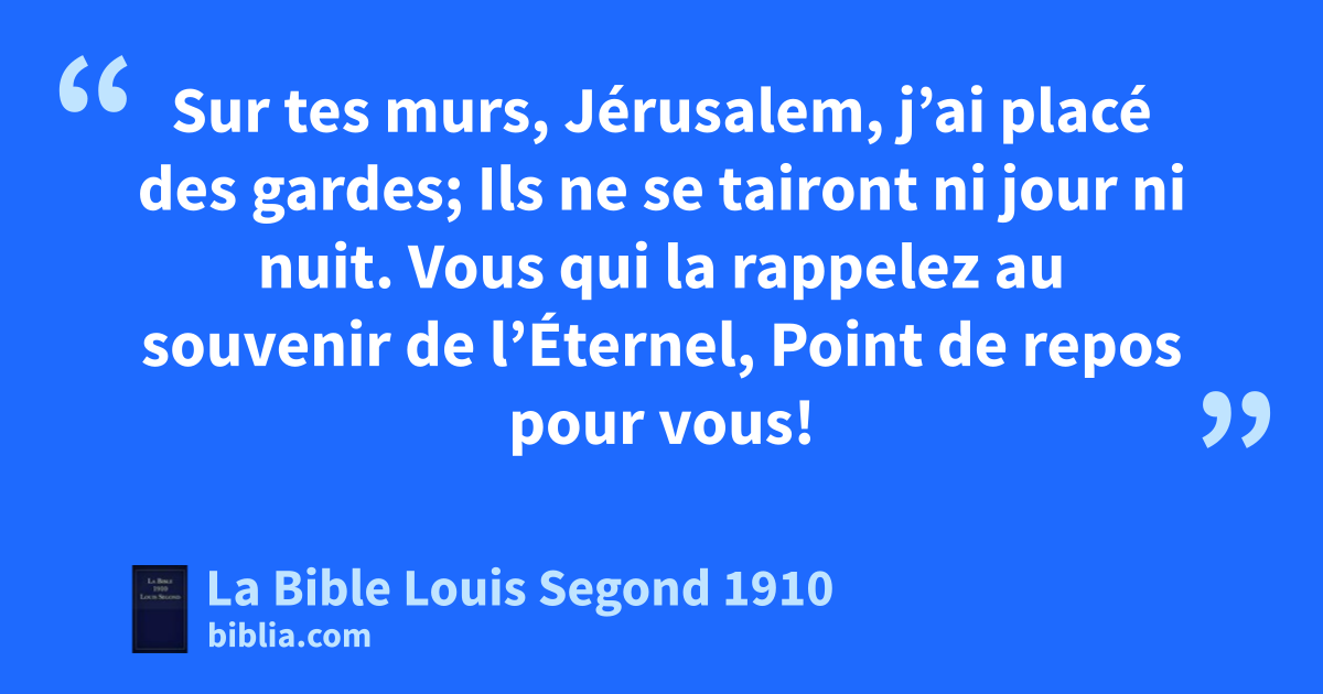 6Sur tes murs, Jérusalem, j’ai placé des gardes;