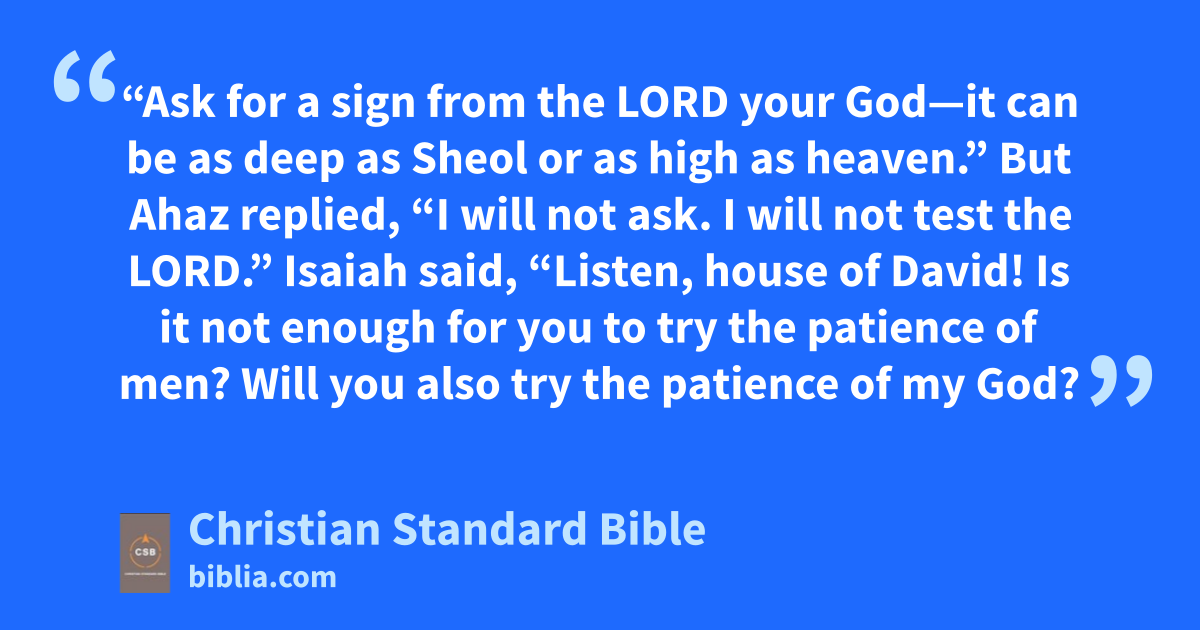 12 But Ahaz replied, “I will not ask. I will not test the Lord.”