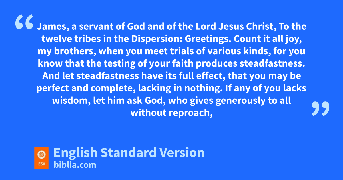 5 jIf any of you lacks wisdom, klet him ask God, lwho gives generously to all without reproach, and it will be given him. 6 But mlet him ask in faith, nwith no doubting, for the one who doubts is like oa wave of the sea that is driven and tossed by the wind. 7 For that person must not suppose that he will receive anything from the Lord; 8 phe is a double-minded man, qunstable in all his ways.
