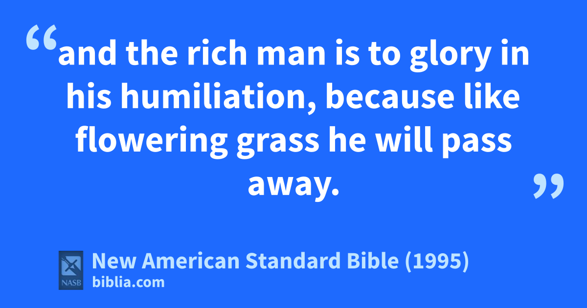10 and the rich man is to glory in his humiliation, because alike 1flowering grass he will pass away.