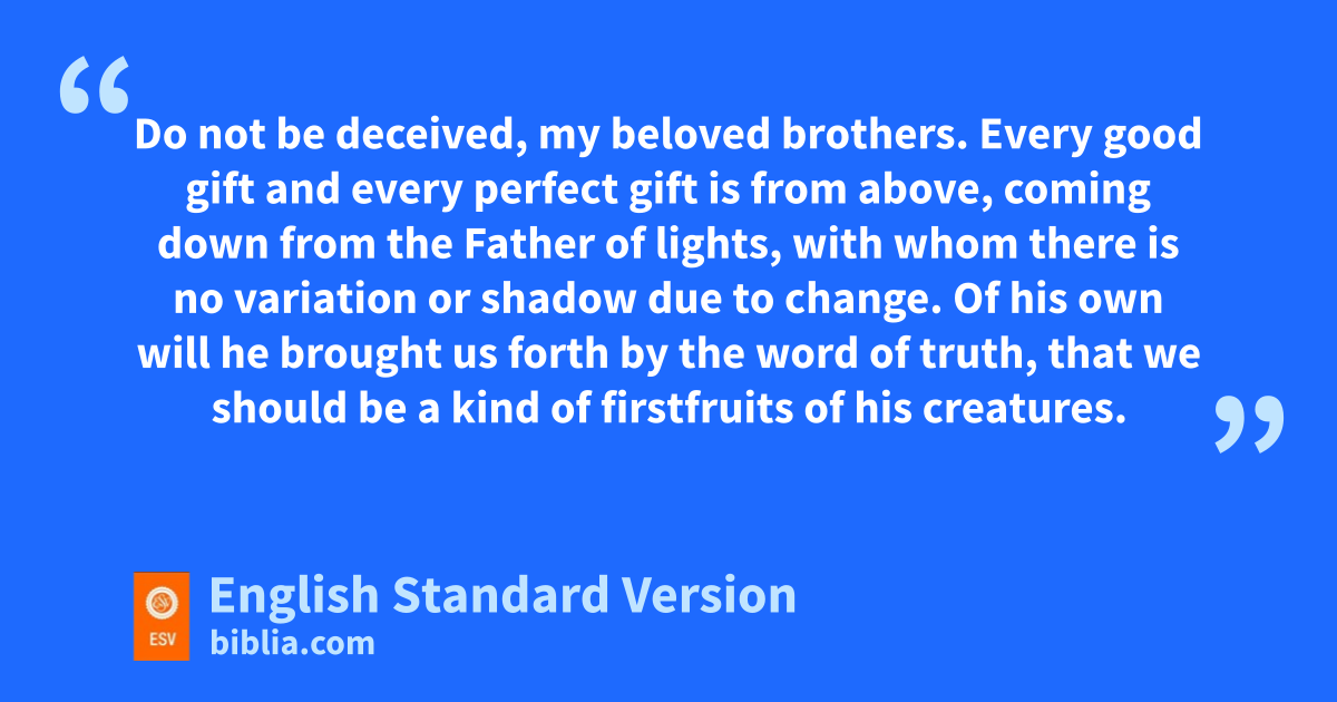 16 Do not be deceived, my beloved brothers. 17 zEvery good gift and every perfect gift is from above, coming down from athe Father of lights, bwith whom there is no variation or shadow due to change.4 18 cOf his own will he dbrought us forth by the word of truth, ethat we should be a kind of ffirstfruits of his creatures.