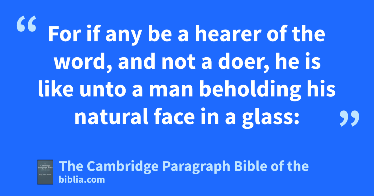 19 Wherefore, my beloved brethren, let every man be zswift to hear, aslow to speak, bslow to wrath: 20 for the wrath of man worketh not the righteousness of God. 21 Wherefore clay apart all filthiness and superfluity of cdnaughtiness, and receive ewith meekness the fengrafted word, gwhich is able to save your souls. 22 But hbe ye doers of the word, and hnot hearers only, ideceiving your own selves. 23 For kif any be ha hearer of the word, and hnot a doer, he is like unto a man beholding his natural face in la glass: 24 for he beholdeth himself, and goeth his way, and straightway forgetteth what manner of man he was. 25 But whoso mlooketh into the perfect nlaw of liberty, and continueth therein, he being not a forgetful hhearer, but ha doer of the work, this man shall be oblessed in his * deed. 26 If any man among you pseem to be religious, and qbridleth not rhis tongue, but deceiveth his own heart, this man’s sreligion is vain. 27 Pure sreligion and undefiled before tGod and the Father is this, To uvisit vthe wfatherless and vwidows in their affliction, and xto keep himself yunspotted from the world.