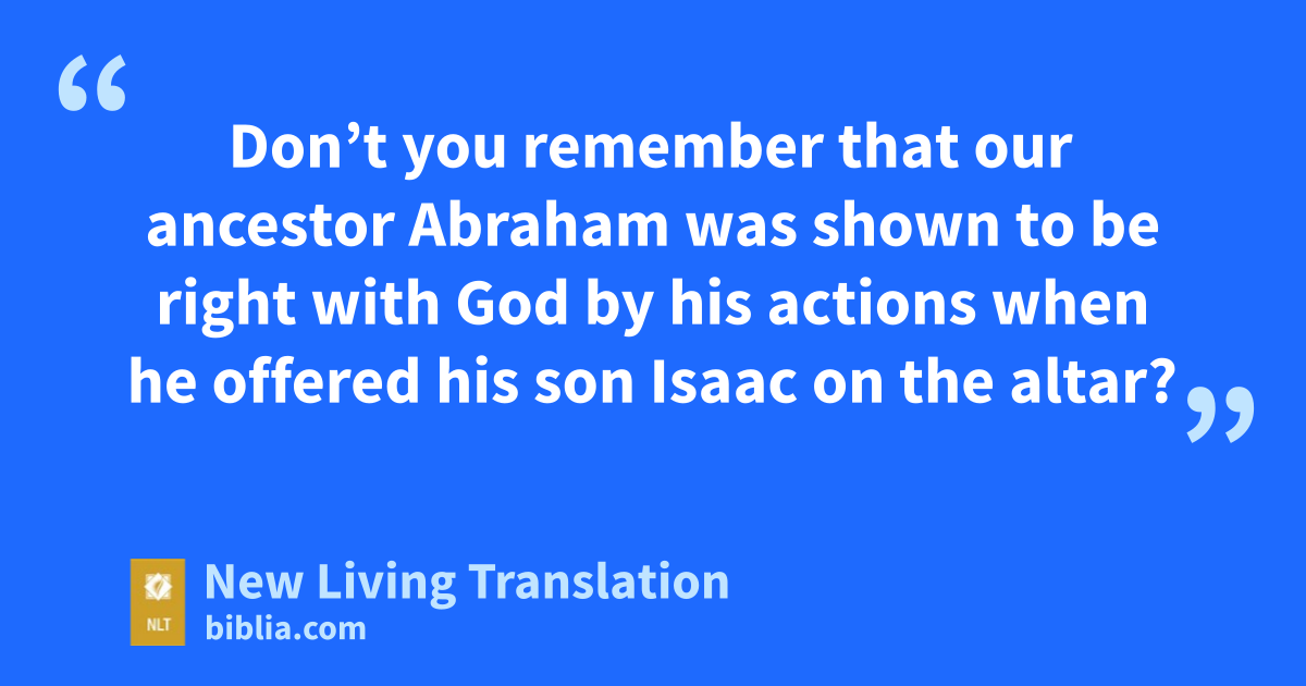 21 Don’t you remember that our ancestor Abraham was shown to be right with God by his actions when he offered his son Isaac on the altar? 22 You see, his faith and his actions worked together. His actions made his faith complete. 23 And so it happened just as the Scriptures say: “Abraham believed God, and God counted him as righteous because of his faith.”* He was even called the friend of God.* 24 So you see, we are shown to be right with God by what we do, not by faith alone.