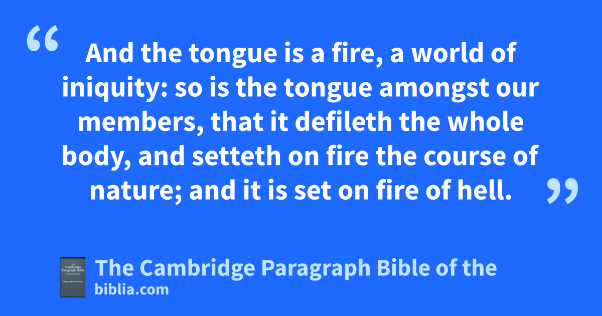 III. My brethren, abe not many bmasters, knowing that we shall receive the greater * condemnation. 2 For cin many things we doffend all. eIf any man doffend not in word, fthe same is a gperfect man, and able also hto bridle the whole body. 3 Behold, iwe put hbits in the horses’ mouths, that they may obey us; and we turn about their whole body. 4 Behold also the ships, which though they be so great, and are driven of fierce winds, yet are they turned about with a very small helm, whithersoever the governor listeth. 5 Even so the tongue is a little member, and kboasteth great things. Behold, how great * a matter a little fire kindleth. 6 And lthe tongue is a fire, a world of iniquity: so is the tongue amongst our members, that mit defileth the whole body, and setteth on fire the * course of nature; and nit is set on fire of ohell. 7 For every * kind of beasts, and of birds, and of serpents, and of things in the sea, is tamed, and hath been tamed of * mankind: 8 but the tongue can no man tame; it is an unruly evil, pfull of deadly poison. 9 Therewith bless we qGod, even the Father; and therewith curse we men, rwhich are made after the similitude of God. 10 Out of the same mouth proceedeth blessing and cursing. My brethren, these things ought not so to be. 11 Doth a fountain send forth at the same * place sweet water and bitter? 12 Can the fig tree, my brethren, bear olive berries? either a vine, figs? so can no fountain both yield salt water and fresh.