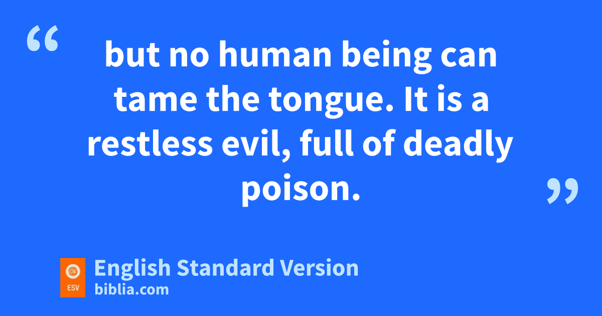 How great a forest is set ablaze by such a small fire! 6 And ithe tongue is a fire, a world of unrighteousness. The tongue is set among our members, jstaining the whole body, setting on fire the entire course of life,1 and set on fire by hell.2 7 For every kind of beast and bird, of reptile and sea creature, can be tamed and has been tamed by mankind, 8 but no human being can tame the tongue. It is a restless evil, kfull of deadly poison. 9 With it we bless our Lord and Father, and with it we curse people lwho are made in the likeness of God. 10 From the same mouth come blessing and cursing. My brothers,3 these things ought not to be so. 11 Does a spring pour forth from the same opening both fresh and salt water? 12 Can a fig tree, my brothers, bear olives, or a grapevine produce figs? Neither can a salt pond yield fresh water.