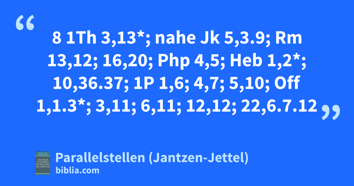 8 1Th 3,13*; nahe Jk 5,3.9; Rm 13,12; 16,20; Php 4,5; Heb 1,2*; 10,36.37; 1P 1,6; 4,7; 5,10; Off 1,1.3*; 3,11; 6,11; 12,12; 22,6.7.12