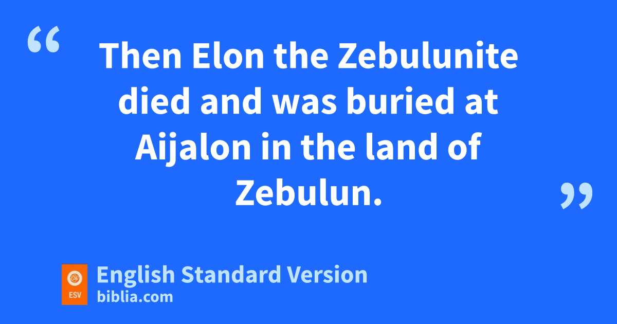 11 After him Elon the Zebulunite judged Israel, and he judged Israel ten years. 12 Then Elon the Zebulunite died and was buried at Aijalon in the land of Zebulun.